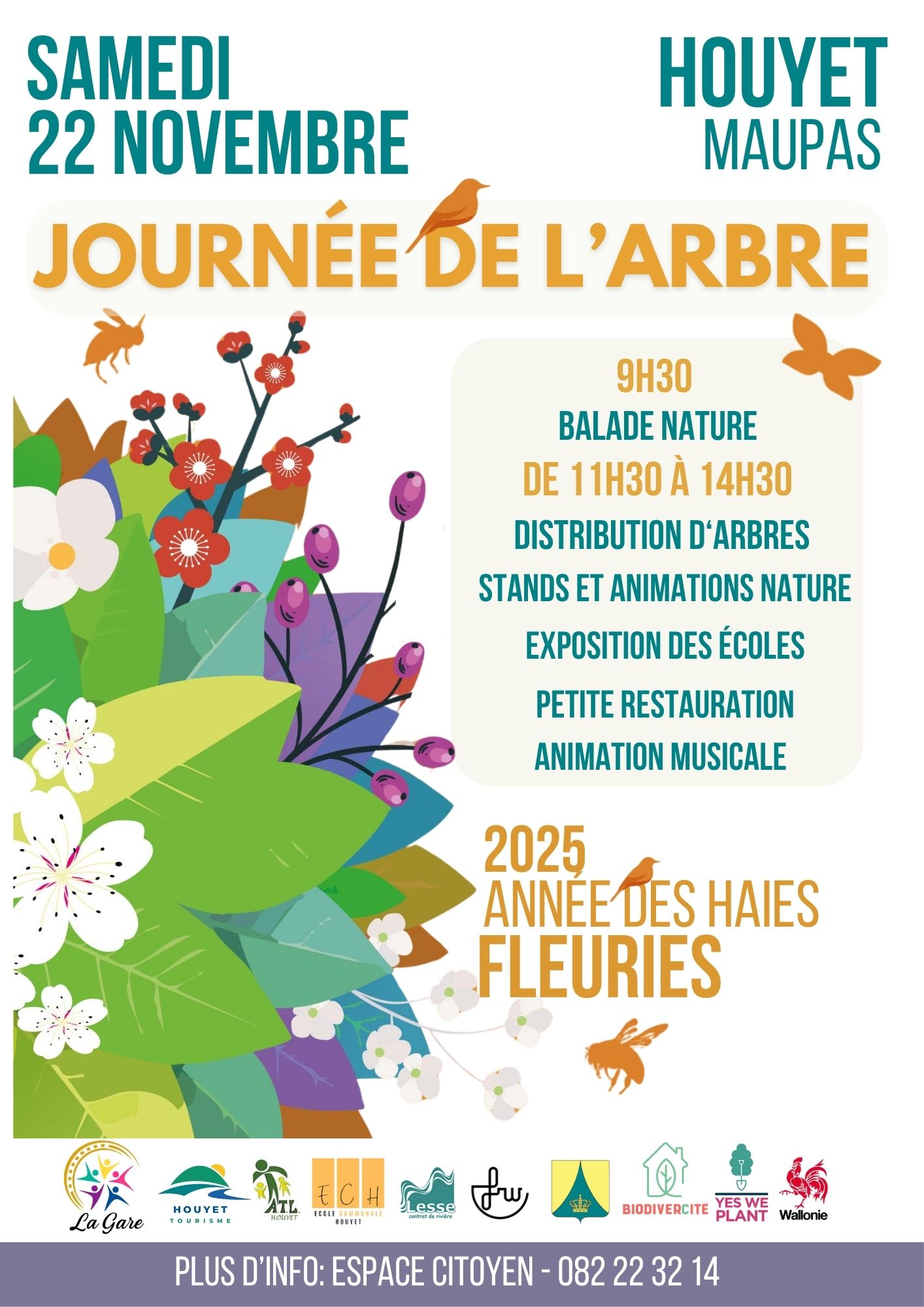 Rue Maupas, HouyetBienvenue à la Journée de l’Arbre le samedi 22 Novembre au Maupas à Houyet ! Au programme : 9h30:* Balade nature animée par Jean-Louis Marlair et mini chantier collectif (plantation d’une haie).Inscription obligatoire : info@espacecitoyenhouyet.be; 082/22.32.14 De 11h30 à 14h30:* Distribution d’arbustes * Exposition des écoles et activités pour enfant avec l’ATL.* Stands Nature : Groupe […]